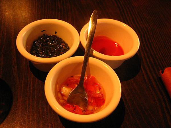 這邊除了三種沾醬外還提供了黑胡椒與玫瑰鹽讓你調味